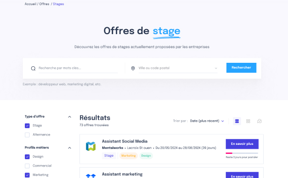 Final project for my bachelor's degree in web development. Developed in Symfony and React, the aim was to create a site that would put interns, work-study students and employers in touch with each other as they looked for work.